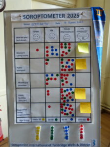 Where structured conversations aren’t practical, we deploy an interactive visual tool we call the Soroptometer, which allows women to express their thoughts about common issues affecting their lives. Used at public events, it’s an informal way of gauging valuable insights into women’s priorities. For example, concerns raised about local women’s healthcare have prompted several members to join their GP’s Patient Participation Groups, ensuring that women’s voices are heard at both a local and a strategic level.