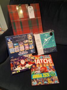 Thanks to the generosity of members, friends and families, our club has again been able to deliver Christmas presents for the families currently in safe accommodation provided by Harbour, our local charity supporting individuals affected by abuse from a partner, former partner or other family member (https://www.myharbour.org.uk/). Each woman will receive a festive bag of beautiful toiletries and there’s a gift for all the children (27 this year). Each child will get a pair of pyjamas, a book, a toy or game and a selection box.