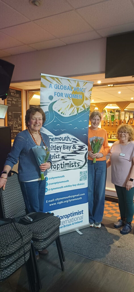 Welcome to another new member, Carolyn (with the flowers on the right) with new member Christine (on the left) with Louise, who has been a member for a long time! Being a Soroptimist gives us the opportunity to be involved in events and activities from which we learn so much and it’s a lot of fun too. We hope our new members enjoy being a Soroptimist in our club.