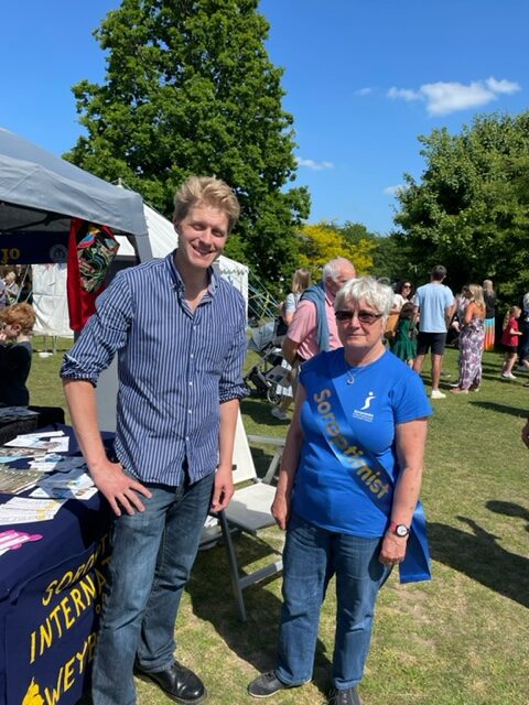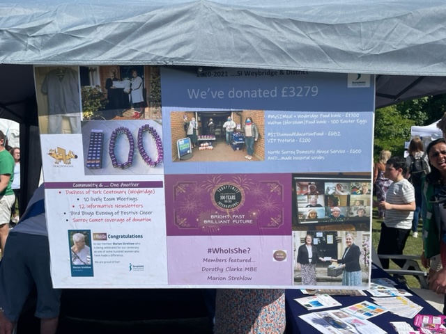 We were there! Soroptimists in Weybridge and Elmbridge have supported this excellent community fair for many years and we were delighted to be “back” at a wonderful in person event held on such a sunny day. Danny and Jeannie set up early to get a spot near the arena, they were supported by many club members and wore the new SI sashes which drew a lot of questions as we walked about the fair. Sue provided a good variety of beautiful handmade cushion covers and bags from the South African club Maripula women’s project and these were quickly ‘reserved’ bringing in welcome income to the project. Five women asked for more information, we engaged with many more. We had the opportunity to host #DrBenSpencer local MP and #CharuSood, Charu serves on the Runnymede & Weybridge South Area Planning Sub Committee, Climate advisory board and Licensing. She is also the Shadow Cabinet Member for Environment. Invitations to speak at club meetings were extended. Lovely club day with a chance to socialise and catch up over a glass of Pimms but also fly the flag high!