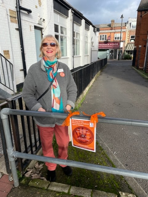 #Weybridge Soroptimists walk and talk, provide information and posters to traders, dress the #elmbridge localities with ‘oranges’, and highlight the importance of the UN global #orangetheworld effort to help change attitudes and femicide. See the 20221 UN report here. Thank you to #SouthernRailHamptonCourt for displaying our poster alongside your ‘white ribbon’ poster. Powerful in combination. A reminder to those travelling with ill intent.