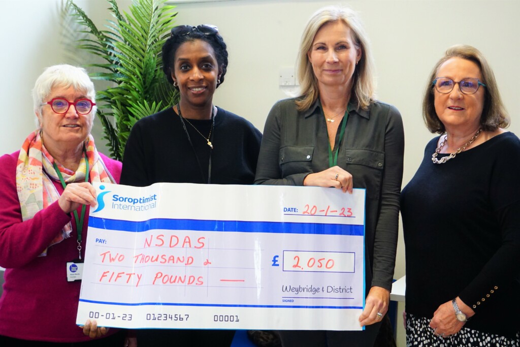 #NorthSurreyDomesticAbuseService was clearly thrilled to receive the financial support for the sterling work their advisors do with victims of domestic abuse and violence. A number of Soroptimists volunteer with Citizens Advice as Advisors in Elmbridge and see first hand how advice, advocacy, direct reassurance and help given freely helps victims to manage and escape environments where fear, coercive control and danger are an everyday occurrence. Weybridge and District Soroptimists and all soroptimists worldwide support the #UNsustainabledevelopment goals for “Good Health & Wellbeing” and “Peace, Justice and Strong Institutions” through advocacy, lobbying, direct community action and raising awareness of the issues and principles. The Weybridge Club Program Action Officer Alexis was present at the presentation and handed over the cheque “This is a testament to the women who make time for other women though program action; we see and understand how important women’s wellbeing and mental state can impact families, girls and society. The club is proud and thankful for the wonderful support of family, friends and like minded women in supporting the club initiatives in Elmbridge. We are one small cog in a global wheel focused on enabling change and always looking for like minded women to join us”.