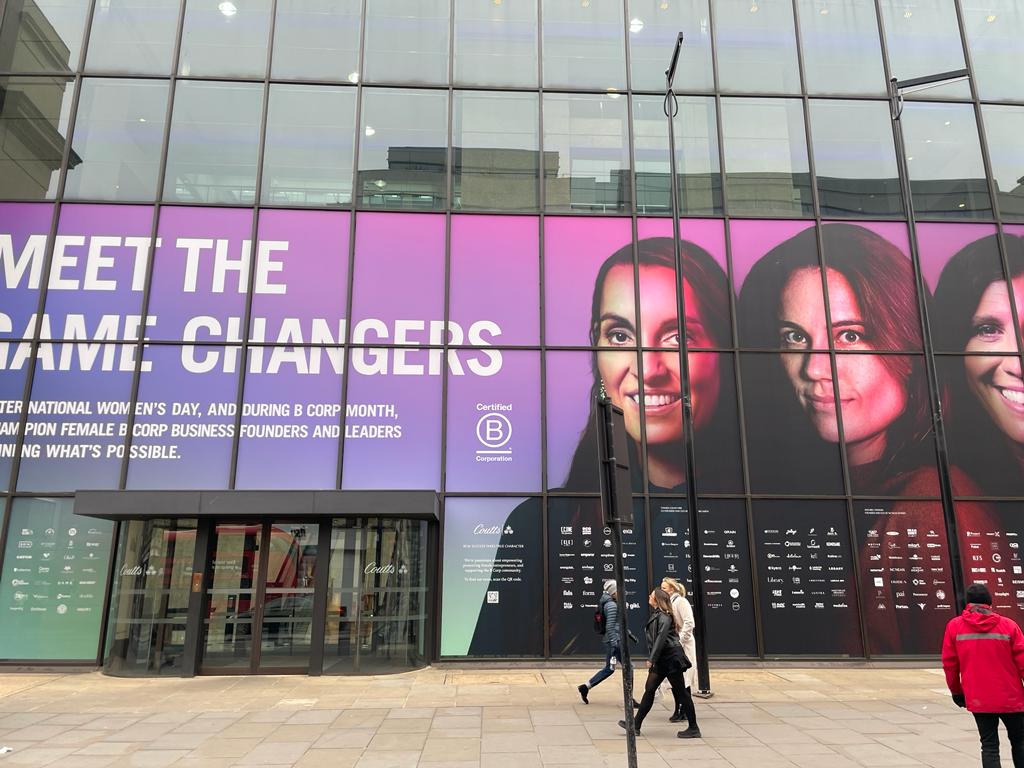 Walking though Charing Cross, London yesterday Soroptimist Caroline my friend could not help but notice the enormous electronic bill board over #CouttsBank. Today is International Women’s Day. Well done @Coutts, great to see businesses heralding the successes of women leaders in a world dominated in business by men on IWD.