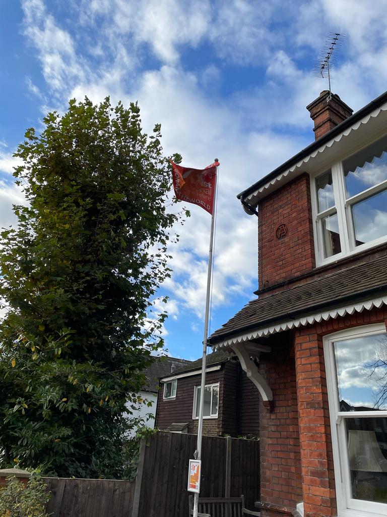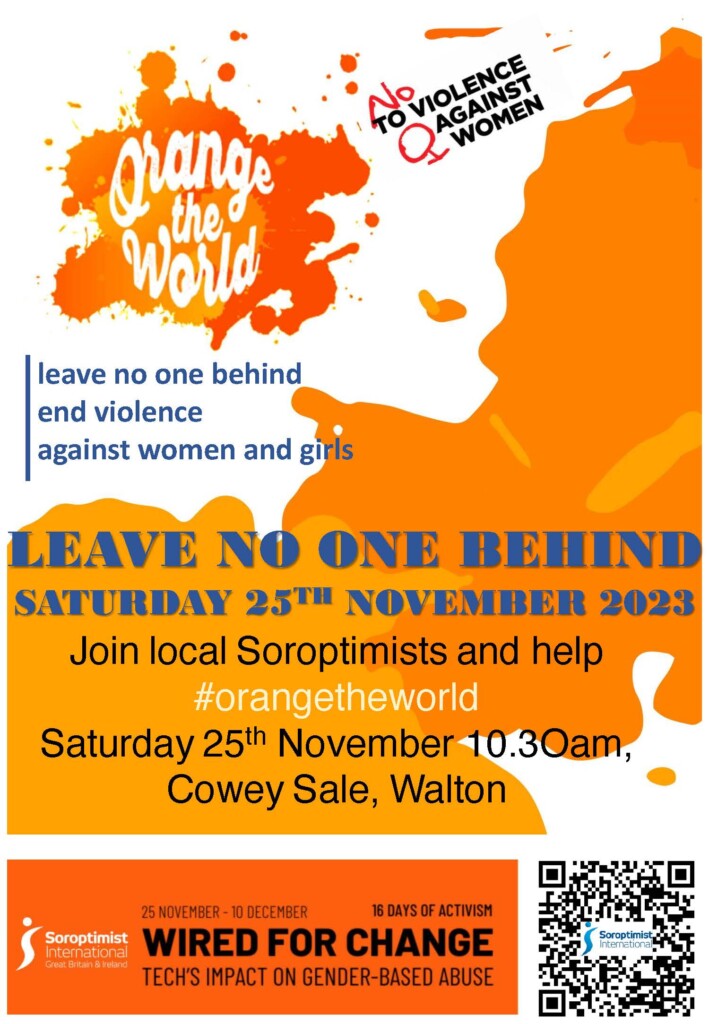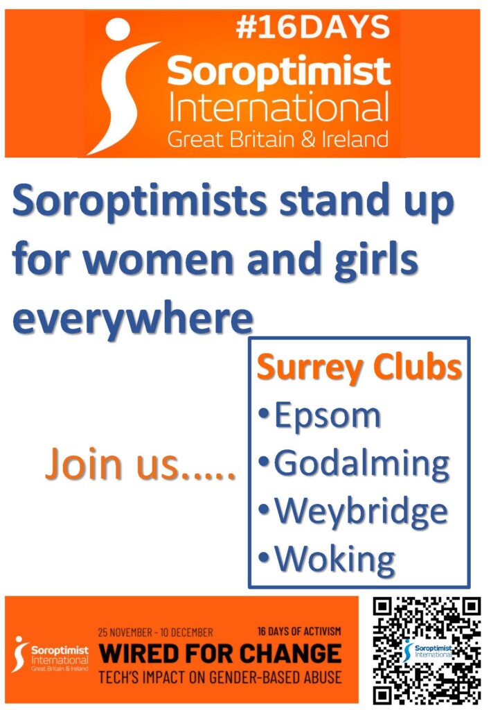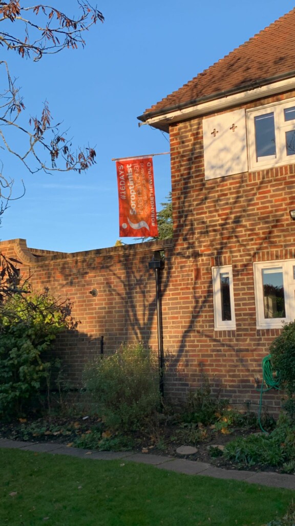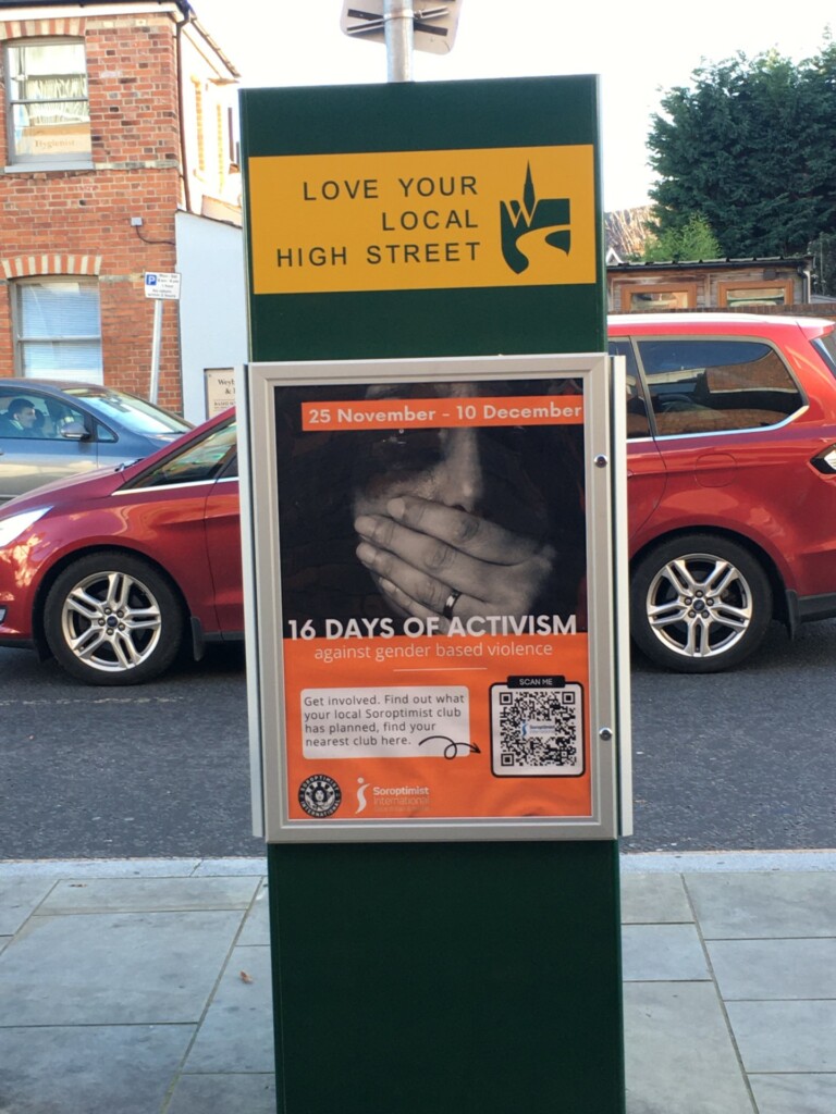 We are also marking the #16DAYS with a presence throughout Weybridge to amplify the campaign message. We have raised flags on Monument Green and in Cobham, these will remain in place across #16DAYS. The notice board on the flagpole will sport campaign messages updated regularly along with a QR code directing passers-by to our website. Posters are evident too in The Weybridge Hub, library, post office and a couple of news agents. Our friends in St James Church also kindly put up a notice for us.