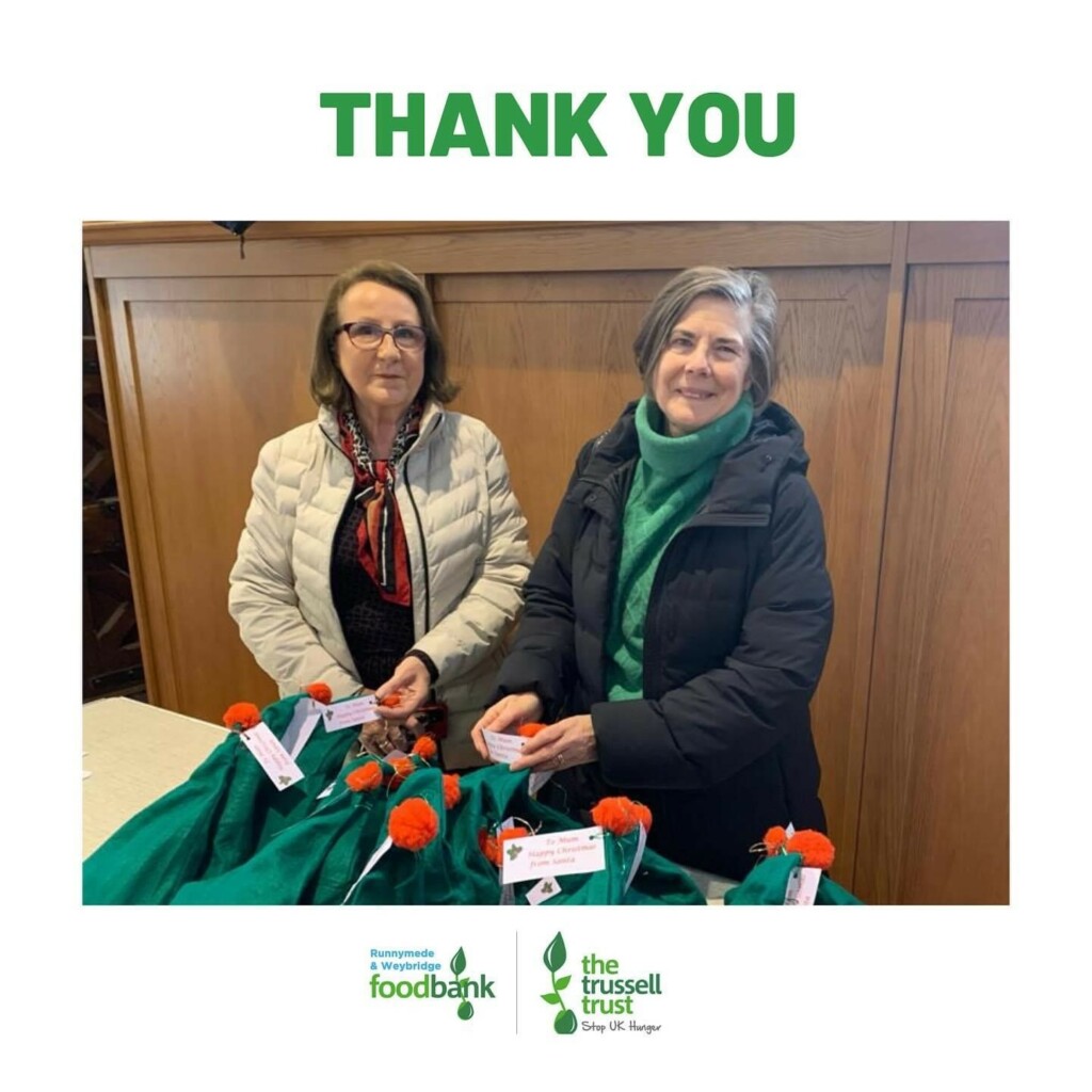 At this time of year mothers and women struggling financially face difficult choices, heat the home, pay the bills, put food on the table, borrow to buy extras and gifts? Alongside supporting foodbanks with female hygiene products year round, local women soroptimists volunteer and fundraise to aid community foodbanks around the country with supermarket vouchers and food, plus summer essentials like children’s sun lotion and treats at Easter. This festive season our soroptimists and friends in Elmbridge donated £15 to fill each gift hat for women and mums from Santa. Brenda and Cathy delivered 20 to @Runnymede at #WeybridgeFoodbank last week, Jean and Ann did the same at @Walton&Hershamfoodbank. Sincere thanks to the generous soroptimists, neighbours, friends and family for the cash to enable this sharing of joy and goodwill locally. Merry Christmas to all partners, volunteers and charities we work with locally to improve the lives of women and girls. And to #RunnymedeFoodbank for the kind festive shout out of thanks this week.