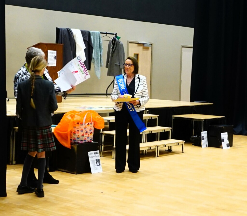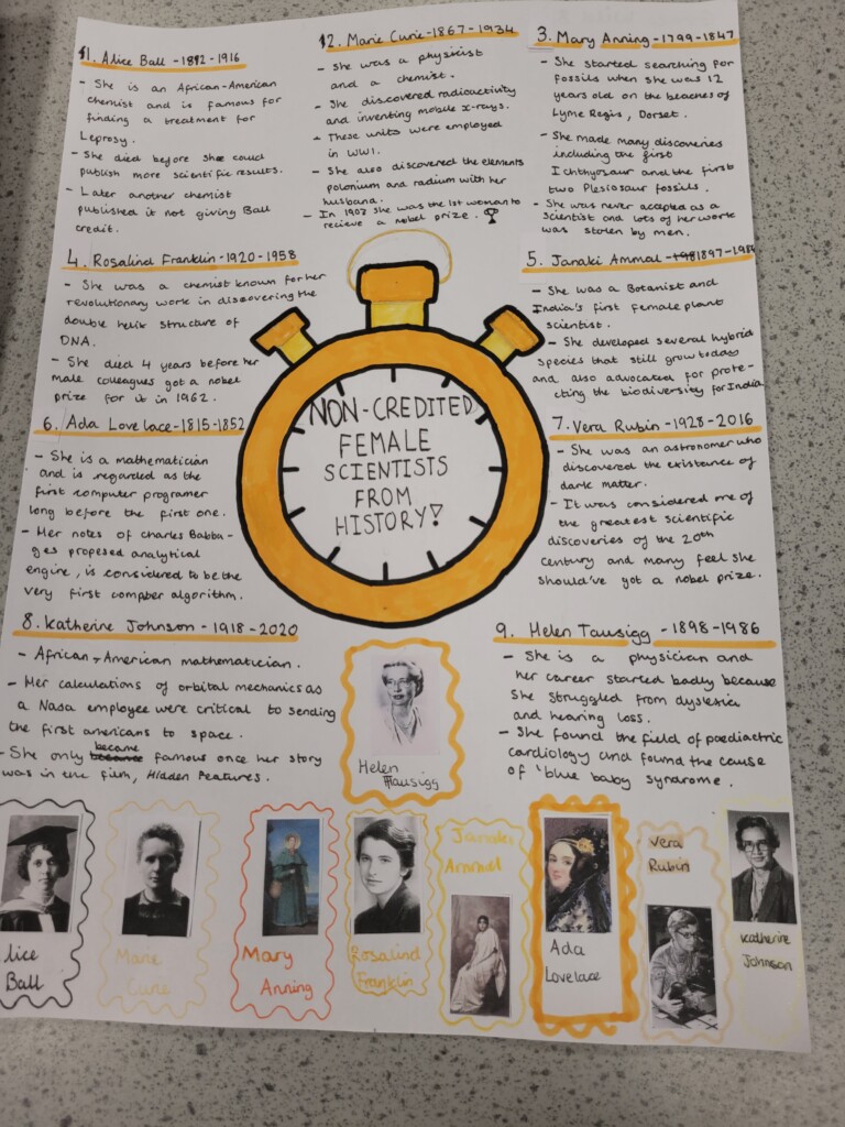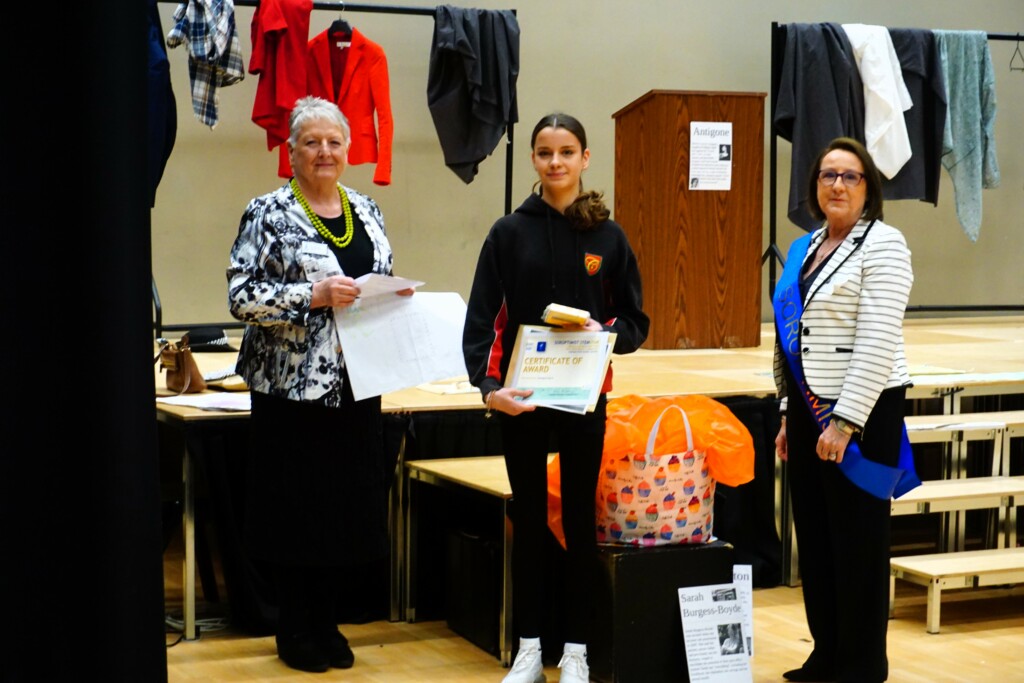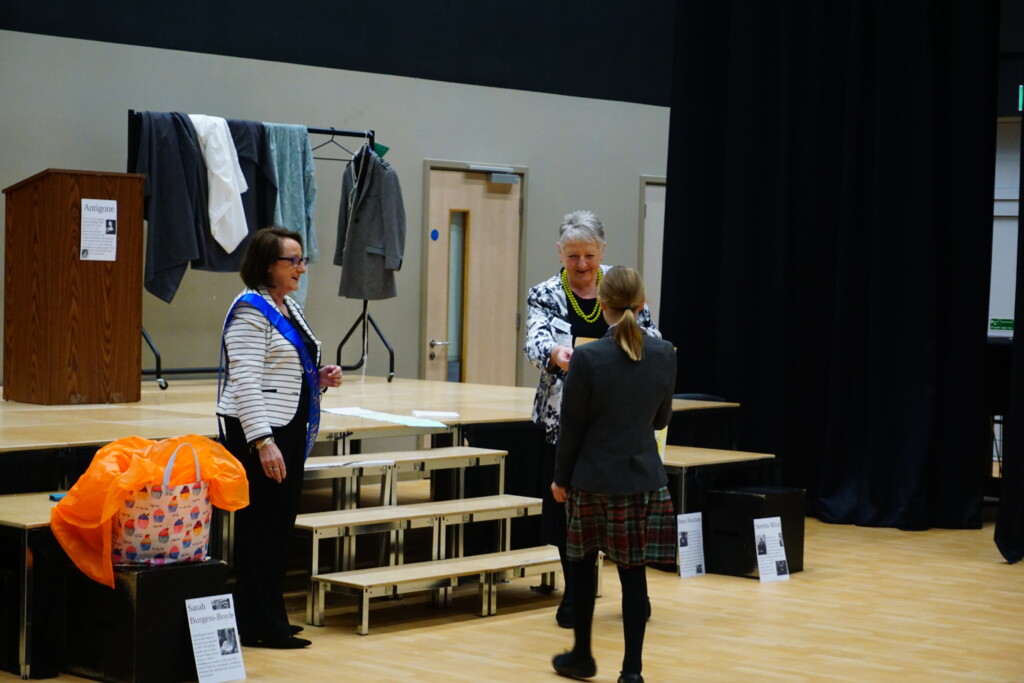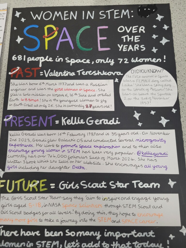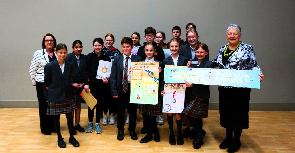 SI Weybridge & District soroptimists hosted a Year Group assembly on April 17th at Cobham Free School. This followed a successful launch of the British Science Week Poster Competition with the science teaching team during a February assembly. The SI #STEM team presented Soroptimist #STEMSTAR certificates and Amazon vouchers to 5 winning poster artists and 3 excellent runners up. The winners in Years 7,8 and 9 created posters presenting research information on “the impact of women over time on science and technology”. With so many excellent posters submitted by boys and girls (all created in a short time), judging was fierce and intense.