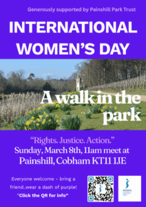 Painshill Park Trust has generously supported SI Weybridge & District’s plan to host a “Walk in the Park” in celebration of International Women’s Day on Sunday 8 March. Everyone is welcome – club members, friends and family, members of other clubs, community partners, and anyone in the local community who would enjoy a gentle walk together and the early signs of spring.