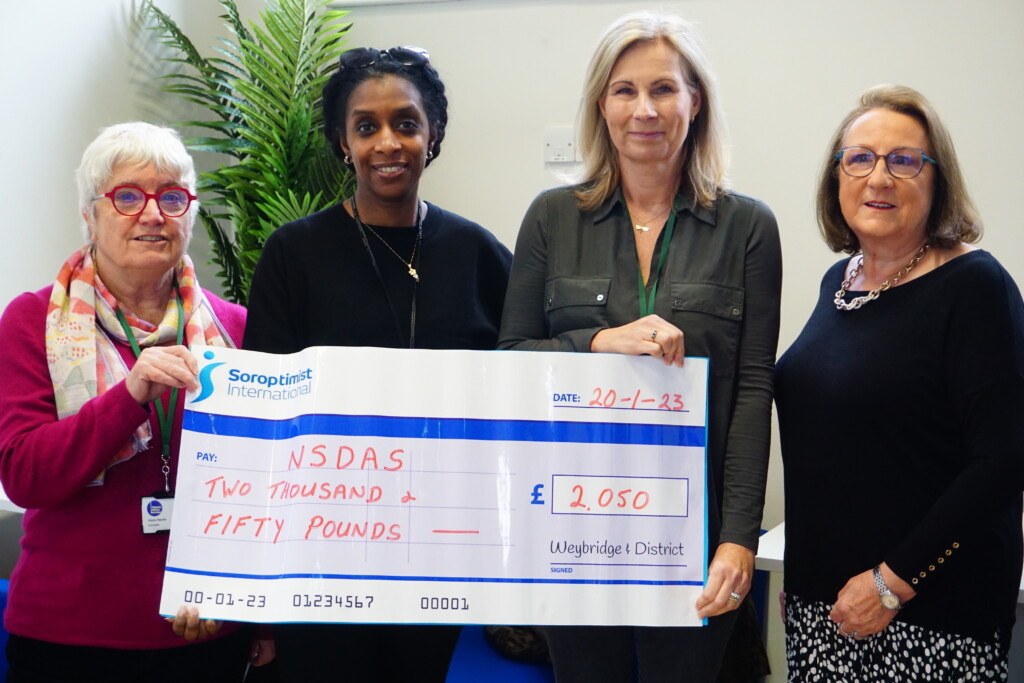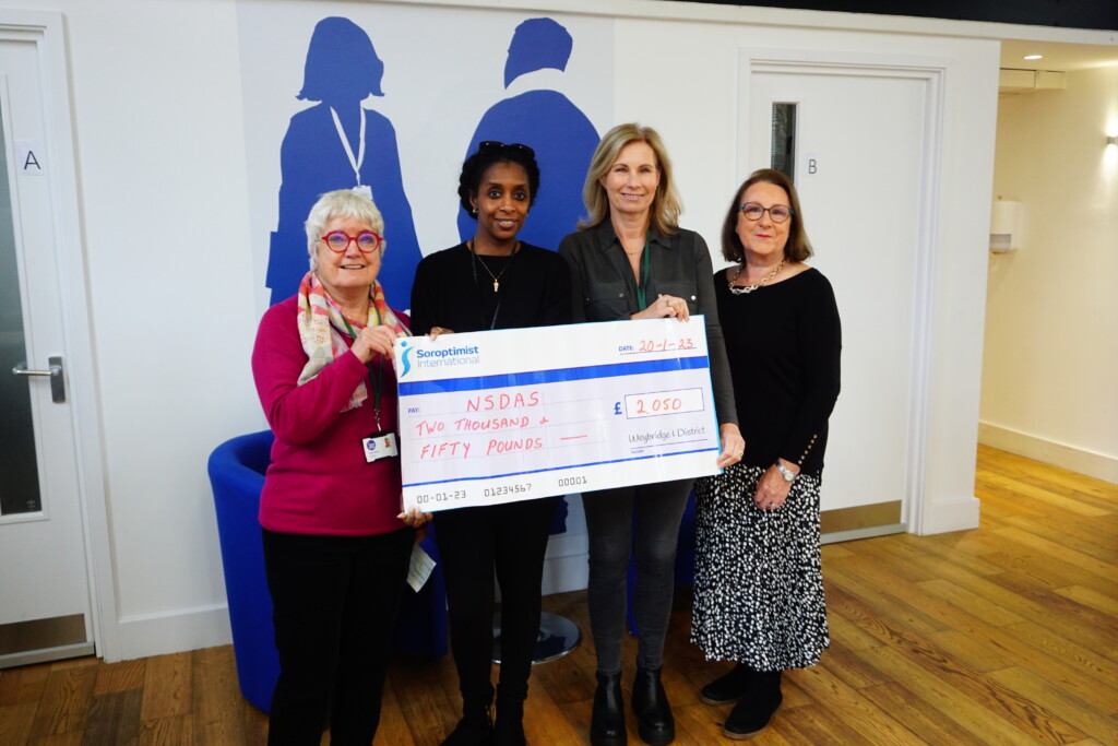 #NorthSurreyDomesticAbuseService was clearly thrilled to receive the financial support for the sterling work their advisors do with victims of domestic abuse and violence. A number of Soroptimists volunteer with Citizens Advice as Advisors in Elmbridge and see first hand how advice, advocacy, direct reassurance and help given freely helps victims to manage and escape environments where fear, coercive control and danger are an everyday occurrence. Weybridge and District Soroptimists and all soroptimists worldwide support the #UNsustainabledevelopment goals for “Good Health & Wellbeing” and “Peace, Justice and Strong Institutions” through advocacy, lobbying, direct community action and raising awareness of the issues and principles. The Weybridge Club Program Action Officer Alexis was present at the presentation and handed over the cheque “This is a testament to the women who make time for other women though program action; we see and understand how important women’s wellbeing and mental state can impact families, girls and society. The club is proud and thankful for the wonderful support of family, friends and like minded women in supporting the club initiatives in Elmbridge. We are one small cog in a global wheel focused on enabling change and always looking for like minded women to join us”.