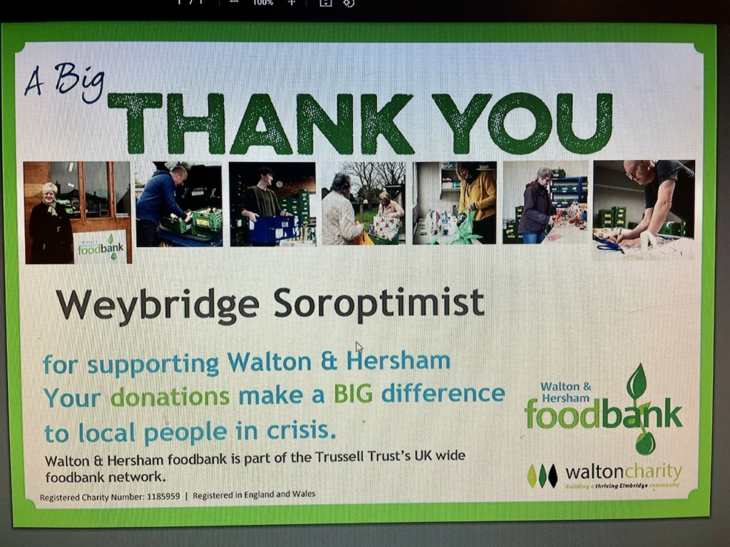 SIWD member Brenda Saunders raised the donation shortage to the Club, highlighting the Weybridge Foodbank COVID-19 appeal for donations. She herself had been popping a weekly ‘donation’ box in her front garden for neighbours to donate to. Club members stepped up and donated the cost of their usual club meal for 3 months (April-June), to raise funds for Foodbank.