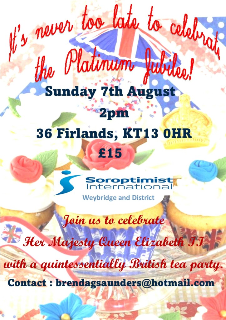 August 7th 2022 in Weybridge 2-5pm – SI Weybridge & District Platinum Jubilee Afternoon Tea – Tickets £15