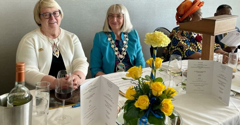 Several members of SI Wigan travelled to Southport recently to attend their 90th Charter Lunch at Hillside Golf Club. The lunch was well attended with Dorcas our Regional President and Sigbi President Maureen Maguire. SI Southport President Carol Cookson hosted the proceedings and a good time was had by all who were able to attend. Dorcas and her husband Claudius pictured with SI Wigan President Angela Holmes Sigbi President Maureen Maguire pictures with SI Southport President Carol Cookson