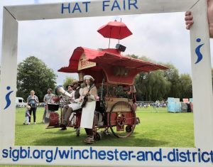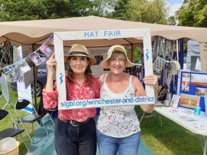 Soroptimist International of Winchester took part in the Hat Fair from 2-4 July. This year was very different with 5 sessions of ticketed slots from Friday evening to Sunday evening. This took place at the North Walls Recreation ground and the School of Art in Winchester.