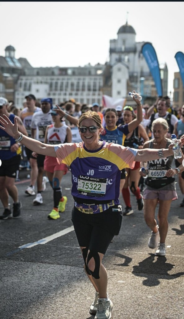 Jo Jefferies, member of SI Winchester, describes running in the London Marathon 2025. The picture illustrates how I (now) feel about my London Marathon experience, pure joy! It has unquestionably been the hardest mental and physical challenge that I have faced, and it was a privilege to have been a part of it.