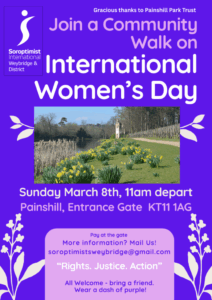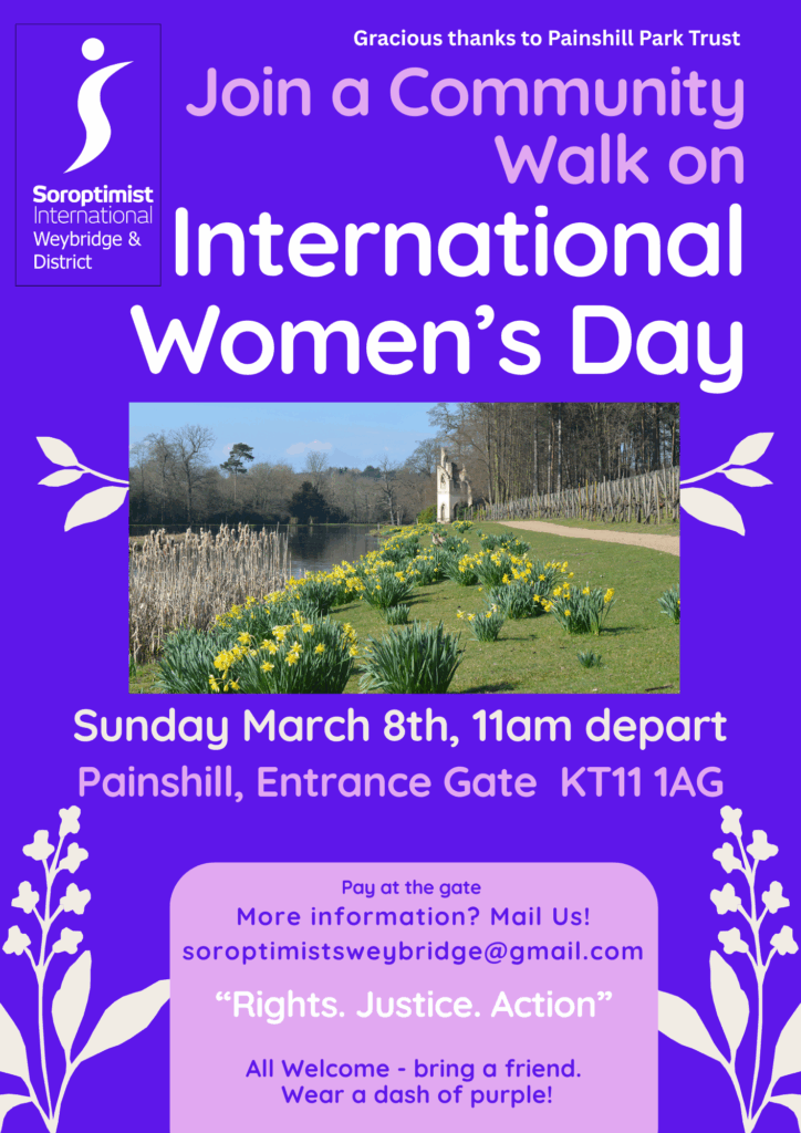 8 March – International Women’s Day – ‘Walking for Women’ with our Sister Soroptimists at Painshill Park – join us if you can!