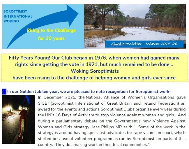 Our safety cards continue to be distributed through a variety of outlets. And former Mayor Anne Ansell was interviewed on Woking Radio, talking about Shopmobility and Soroptimist International.